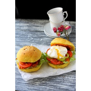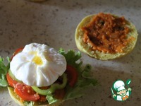 Со второй булочкой проделываем все тоже самое, только поверх овощей кладем еще яйцо пашот, приготовленное удобным для Вас способом. Подавать сразу же. Приятного аппетита! |