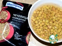 Чечевицу промываем и замачиваем в холодной воде на 12 часов. |