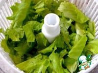 Листья салата моем, сушим и рвем руками. |