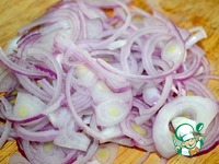 Лук чистим и режем полукольцами. |