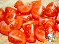 Помидоры режем на четыре части. |