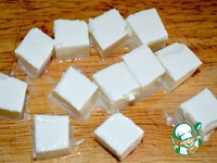 Брынзу режем на небольшие кубики и добавляем в не постный вариант салата. |