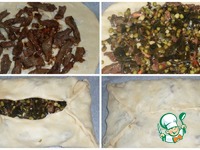 Одну часть теста раскатываем лепешкой. Выкладываем на нее половину нарезанного лука. Затем морскую капусту с машем. Защипываем края. Выкладываем пирог на противень. Это постный вариант. |