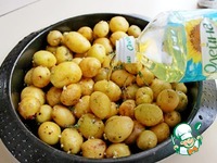 Молодой мелкий картофель хорошо промыть щеткой, обсушить, выложить в форму, присыпать соль, листиками тимьяна и полить растительным маслом "Олейна". Выпекать при 200 гр мин 30 до готовности. |