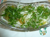 Всё перемешать и украсить по-простому-порезанной зеленью. |