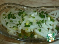 Посыпать луком, порезанным полукольцами. Можно добавить зелёный лук. |