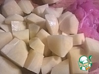 Картофель очистить и нарезать на крупные кусочки (примерно 3 см) |