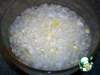 Лук мелко нарезать, выложить в тарелочку. Добавить к луку уксус и долить водой, чтоб покрыть лук. |
