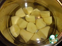 Картофель очищаем и отвариваем в подсоленной воде до полной готовности. Если картофель крупный, лучше его разрезать на 2-3 части. |