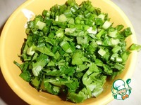 Добавим мелко нарезанный петрушку и зеленый лук, перемешаем. |