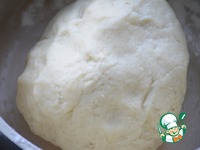 Хорошо перемешать и всыпать муку. Вымешать, раскатать массу в лепешку толщиной 1,5 см. |