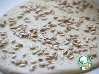 Посыпать солью, кунжутом, очищенными семенами подсолнечника. Слегка вдавить семена с помощью скалки. |