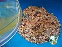 Вот такие мюсли были у меня. Из овсяных хлопьев с изюмом, банановыми чипсами и очень сладкими ананасовыми цукатами. |
