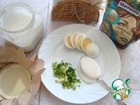Яйцо варим вкрутую, режем его и берём майонез или сметану, можно йогурт натуральный. |