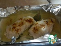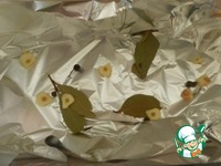 На дно пароварки из пищевой фольги выкладываем "лодочку" (можно легко заменить на рукав для запекания). В лодочку кладем душистый перчик, резанный чеснок, лавровый лист. |