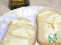 Обжариваем наш фарш, и пока он жарится, подготовим основу для бутербродов. Одну сторону 2х кусочков батона намазать тонким слоем сливочного масла. |
