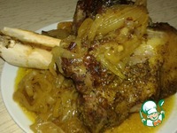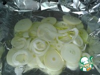 На лук, как на подушку, укладываем нашу голень ( в моей семье любят много лука, тем более он превращается в своего рода соус) |