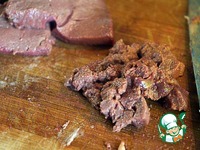 Так же порезать оленью печень. |