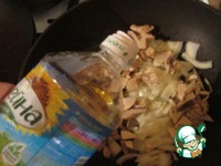 Лук с шампиньонами посолить, поперчить, обжарить до полуготовности. |