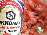 Полить соевым соусом Киккоман. |