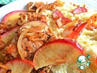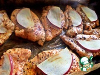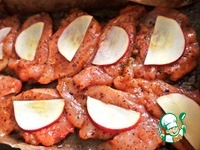 Яблочные дольки разложить сверху на филе. Яблоко отдаст свой сок при запекании. |