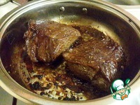 На раскаленном масле быстро обжарить стейки с двух сторон до образования золото-коричневой корочки. (Важно! не пережарить мясо, оно должно сохранять внутри сок) |
