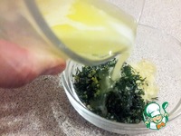 Приготовить соус. В мисочке смешать измельченный чеснок, укроп, соль и топленое сливочное масло |
