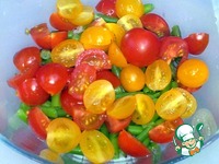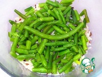 Фасоль свежезамороженную положила в кастрюлю, налила горячую воду, довела до кипения и сразу вылила. Фасоль нарезала помельче. |