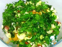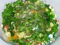 Для вкуса добавила зелёный лук, который собрала на лугу во время прогулки с собачками. |