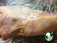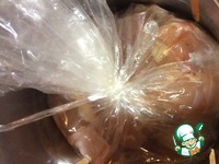 Рулет аккуратно помещаем в пакет для запекания и укладываем его в ветчинницу. Завязываем пакет максимально близко в мясу, предварительно выжав из пакета воздух. |
