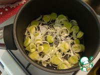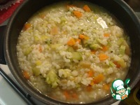 Добавляем по черпачку бульона с овощами. Он у нас стоит рядом на плите, на самом маленьком огне. |