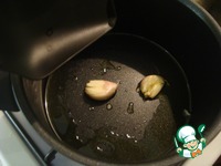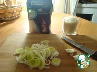 Пока варится бульон, начинаем делать ризотто. Лук мелко режем, чеснок давим плоской стороной ножа. |