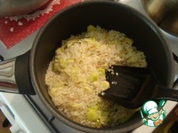 По времени рис варился минут 25-30. Вот здесь можно ризотто присыпать сыром. Конечно лучше Пармезан, но можно и заменить на ваш любимый. Сегодня я этого не делала. |