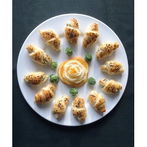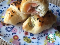 Эта закуска - одно из моих фирменных блюд, которое готовлю часто, как на праздник, так и на каждый день. Вкусно и под бокал вина, и с чаем или кофе. Все зависит от повода и настроения. Украсить также можно по-разному. Иногда на праздничный стол круассаны подаю со взбитым сливочным кремом, настоянным на копченном лососе, т. к. рыба может быть солоновата, а крем смягчает вкус. Сегодня у меня повседневный быстрый вариант.