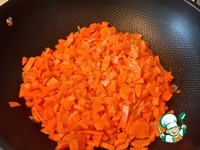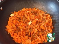Добавить к луку морковь. Обжарить на слабом огне 20-30 минут, периодически помешивая. |