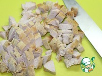 Грудку немного остудить и порезать кубиками |