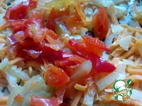 На другой сковороде на "Олейне" поджариваем лук и морковь. Добавляем болгарский перец. |