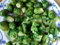 Порезанные брокколи брюссельскую капусту отправляем в кастрюлю. |
