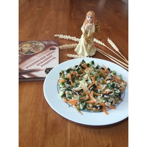 Добавляем нори к салату, солим, заправляем соевым соусом и маслом и перемешиваем. Салат готов!!! |