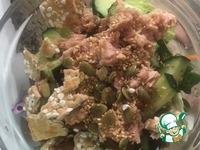 Хлебцы, кунжут и тыквенные семечки. Заправляем оливковым маслом и бальзамический соусом |