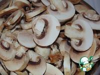 Шампиньоны нарезать пластинами. Отправить к луку. Посолить, поперчить. Готовить 8-10 минут. |