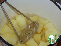 Когда картошка сварится, слить большую часть жидкости в отдельную ёмкость. |