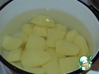 Картофель помыть, почистить. Залить водой, посолить и поставить варить. |