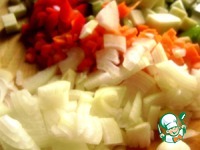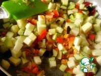 Выложить в масло овощи, кроме кабачка и баклажана. Помешивая, пассеровать, не давая зарумяниваться, пару минут. |