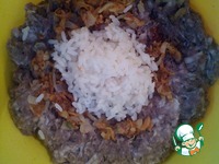 На следующий день: отвариваем рис, обжариваем морковь и лук, добавляем в наш фарш, тщательно перемешиваем. |