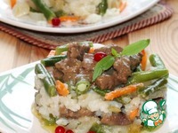 Описание: Вкусный рис с ароматным жареным луком и зеленой фасолью, можно есть как самостоятельное блюдо или подавать как гарнир к мясным и рыбным блюдам.