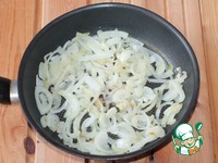 2. Очистить 2 большие луковицы, нарезать полукольцами и обжарить на тихом огне до прозрачности. |