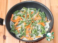 3. Добавить к луку порезанную соломкой морковь, зеленую фасоль, специи (1 ч. л.) и тушить до готовности овощей. |