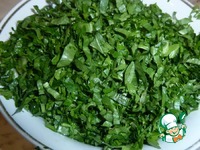 Режем щавель (он придаёт приятную кислинку) и петрушку. |