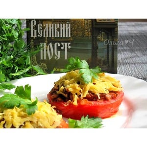 Описание: Помидоры, фаршированные чечевицей, под картофельным "сыром". Перед Вами сытная горячая закуска или основное блюдо на ужин для поста и не только! Попробуйте ;)